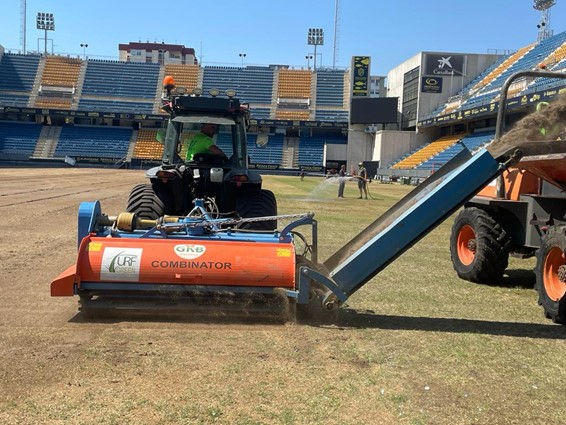 Tras el concierto de Alejandro Sanz en el Nuevo Mirandilla, el equipo de TURF GREEN se trasladó a la capital gaditana para la renovación del terreno de juego del Estadio Ramón de Carranza mediante las operaciones de movimientos de tierra y formación de la capa de enraizamiento para la posterior instalación del tepe de nuestra BERMUDA TIFWAY 419 en formato MAXI ROLL.